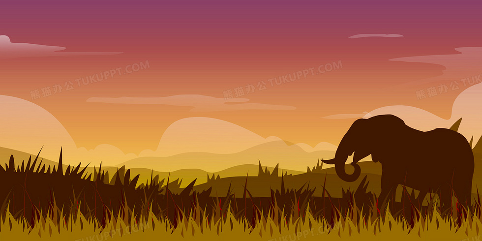 本作品内容为扁平化非洲大草原大象动植物剪影背景, 格式为 psd, 大小4 MB, 图片尺寸为4724 x 2362, 作品中背景图片无需修改, 源文件无水印,可以直接使用, 欢迎使用熊猫办公。 如认为平台内容涉嫌侵权,可通过邮件:tousu@tukuppt.com提出书面通知,我们将及时处理。
