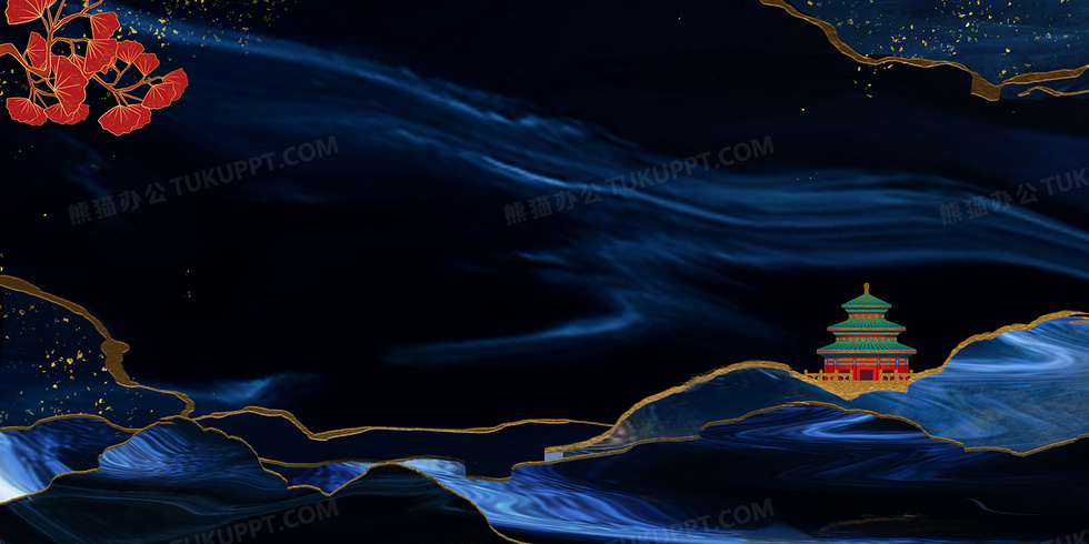 本作品内容为鎏金山水古建筑雅致中国风背景, 格式为 psd, 大小90 MB, 图片尺寸为4724 x 2362, 作品中背景图片无需修改, 源文件无水印,可以直接使用, 欢迎使用熊猫办公。 如认为平台内容涉嫌侵权,可通过邮件:tousu@tukuppt.com提出书面通知,我们将及时处理。