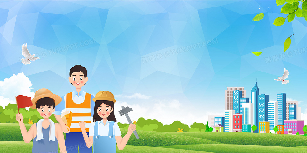 本作品内容为爱岗敬业劳动者城市卡通背景, 格式为 psd, 大小34 MB, 图片尺寸为4724 x 2362, 作品中背景图片无需修改, 源文件无水印,可以直接使用, 欢迎使用熊猫办公。 如认为平台内容涉嫌侵权,可通过邮件:tousu@tukuppt.com提出书面通知,我们将及时处理。