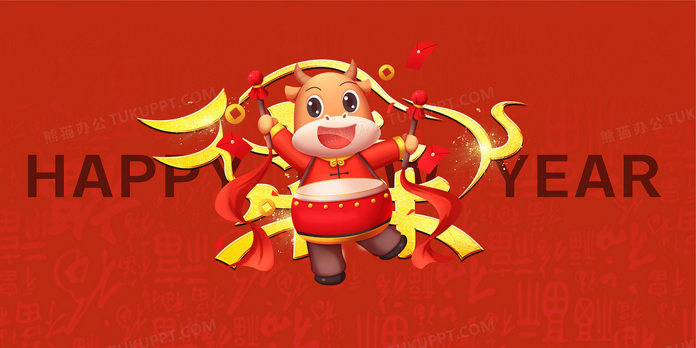 本作品内容为简约喜庆中国风牛年大吉背景, 格式为 psd, 大小27 MB, 图片尺寸为4724 x 2362, 作品中背景图片无需修改, 源文件无水印,可以直接使用, 欢迎使用熊猫办公。 如认为平台内容涉嫌侵权,可通过邮件:tousu@tukuppt.com提出书面通知,我们将及时处理。