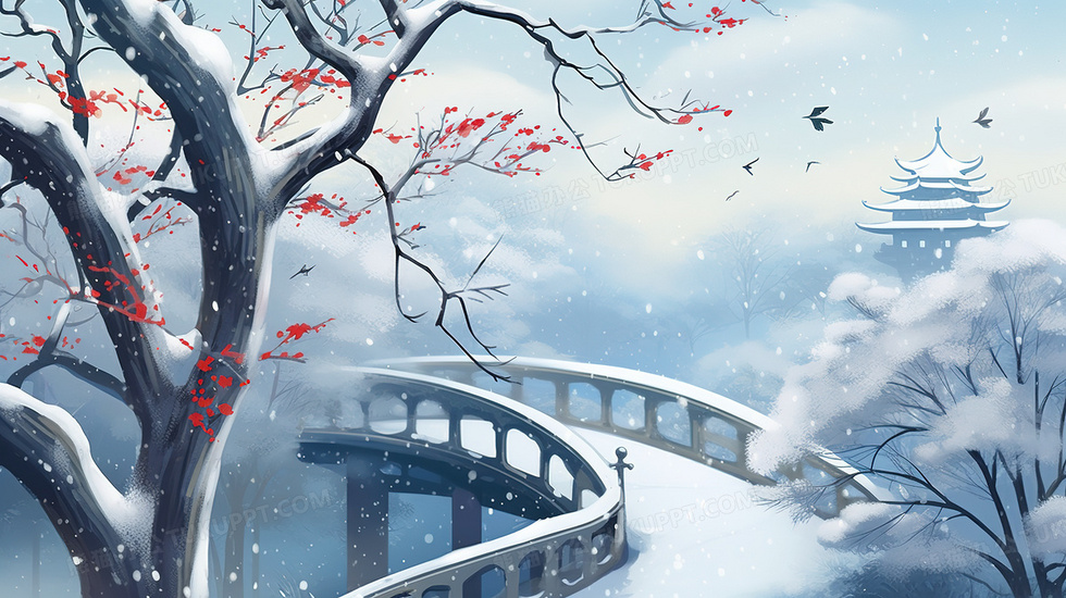 本作品内容为冬季森林寺庙里的小桥流水插画, 格式为 jpg, 大小6 MB, 图片尺寸为2912 x 1632, 源文件无水印, 欢迎使用熊猫办公。 如认为平台内容涉嫌侵权,可通过邮件:tousu@tukuppt.com提出书面通知,我们将及时处理。