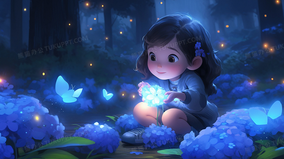 本作品内容为夜晚森林里小女孩找寻萤火虫插画, 格式为 jpg, 大小6 MB, 图片尺寸为2912 x 1632, 源文件无水印, 欢迎使用熊猫办公。 如认为平台内容涉嫌侵权,可通过邮件:tousu@tukuppt.com提出书面通知,我们将及时处理。