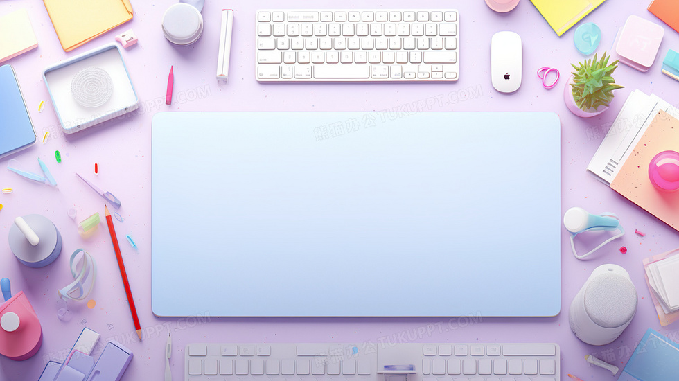 本作品内容为电脑桌上的工作电脑文具插画, 格式为 jpg, 大小5 MB, 图片尺寸为2912 x 1632, 源文件无水印, 欢迎使用熊猫办公。 如认为平台内容涉嫌侵权,可通过邮件:tousu@tukuppt.com提出书面通知,我们将及时处理。