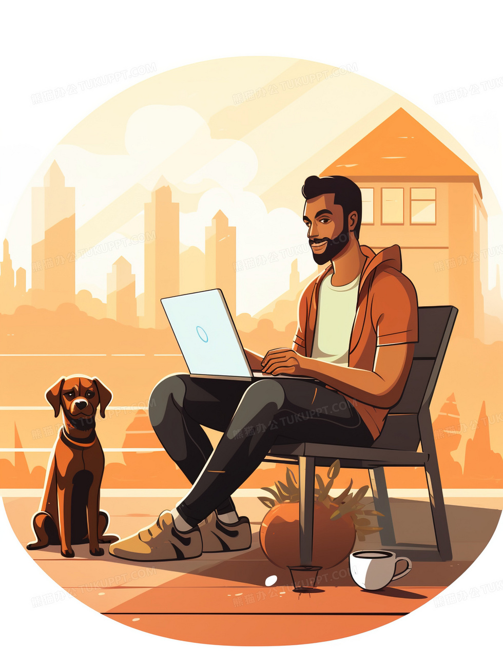 本作品内容为居家休闲小狗男士办公插画, 格式为 jpg, 大小4 MB, 图片尺寸为1856 x 2464, 源文件无水印, 欢迎使用熊猫办公。 如认为平台内容涉嫌侵权,可通过邮件:tousu@tukuppt.com提出书面通知,我们将及时处理。