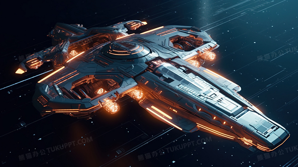 本作品内容为金属质感高科技飞船插画, 格式为 jpg, 大小6 MB, 图片尺寸为2912 x 1632, 源文件无水印, 欢迎使用熊猫办公。 如认为平台内容涉嫌侵权,可通过邮件:tousu@tukuppt.com提出书面通知,我们将及时处理。