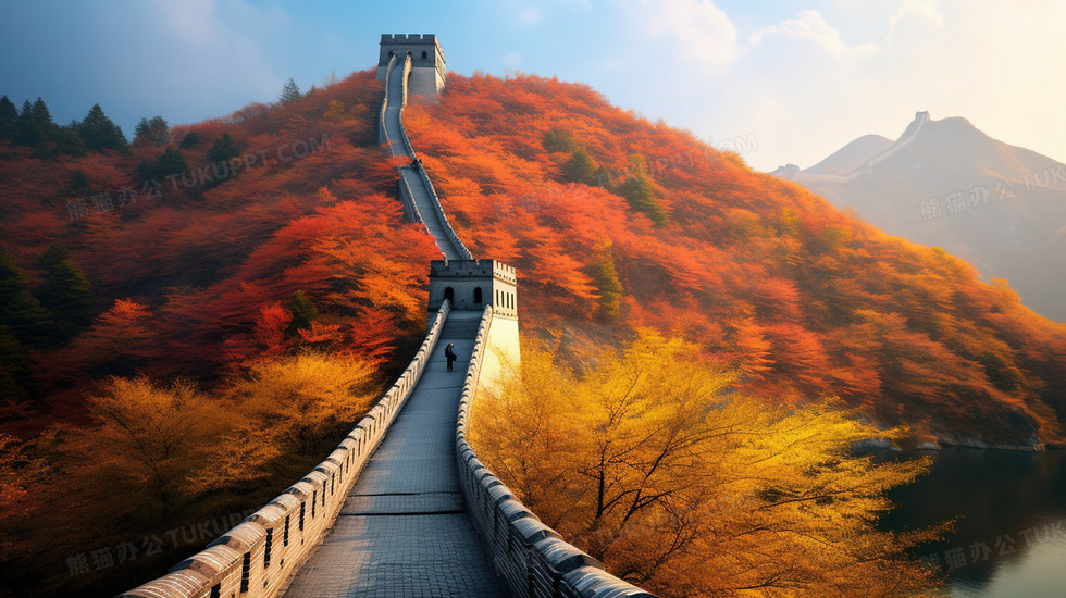本作品内容为秋季中国长城风景插画, 格式为 jpg, 大小7 MB, 图片尺寸为2912 x 1632, 源文件无水印, 欢迎使用熊猫办公。 如认为平台内容涉嫌侵权,可通过邮件:tousu@tukuppt.com提出书面通知,我们将及时处理。