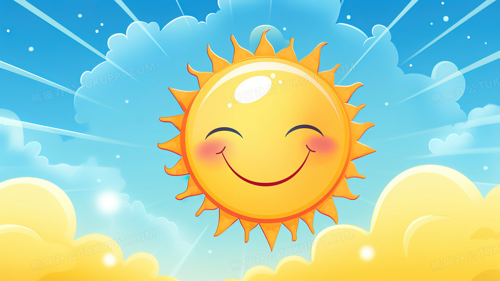 本作品内容为蓝天中金灿灿的微笑太阳插画, 格式为 jpg, 大小4 MB, 图片尺寸为2912 x 1632, 源文件无水印, 欢迎使用熊猫办公。 如认为平台内容涉嫌侵权,可通过邮件:tousu@tukuppt.com提出书面通知,我们将及时处理。