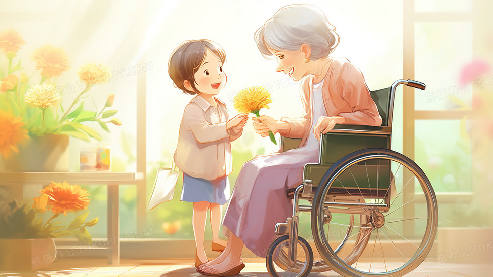 本作品内容为小女孩陪伴坐轮椅的白发老人温馨插画, 格式为 jpg, 大小5 MB, 图片尺寸为2912 x 1632, 源文件无水印, 欢迎使用熊猫办公。 如认为平台内容涉嫌侵权,可通过邮件:tousu@tukuppt.com提出书面通知,我们将及时处理。
