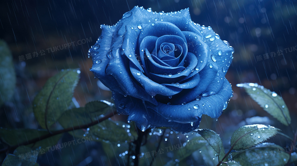 本作品内容为细雨中站着水珠的蓝玫瑰插画, 格式为 jpg, 大小3 MB, 图片尺寸为2912 x 1632, 源文件无水印, 欢迎使用熊猫办公。 如认为平台内容涉嫌侵权,可通过邮件:tousu@tukuppt.com提出书面通知,我们将及时处理。