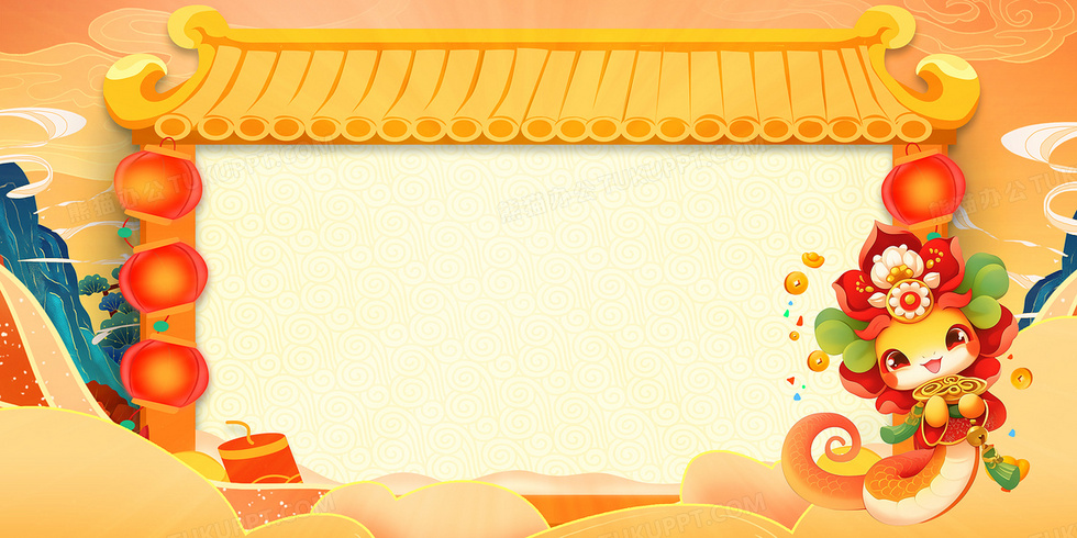 本作品内容为春节色国潮蛇年2025门头边框通知边框背景, 格式为 psd, 大小98 MB, 图片尺寸为4722 x 2361, 作品中背景图片无需修改, 源文件无水印,可以直接使用, 欢迎使用熊猫办公。 如认为平台内容涉嫌侵权,可通过邮件:tousu@tukuppt.com提出书面通知,我们将及时处理。