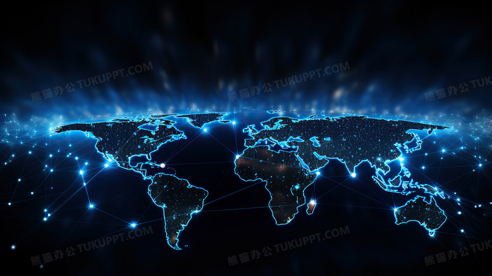 本作品内容为蓝色商务科技虚拟发光地图企业宣传插画, 格式为 jpg, 大小5 MB, 图片尺寸为2912 x 1632, 源文件无水印, 欢迎使用熊猫办公。 如认为平台内容涉嫌侵权,可通过邮件:tousu@tukuppt.com提出书面通知,我们将及时处理。