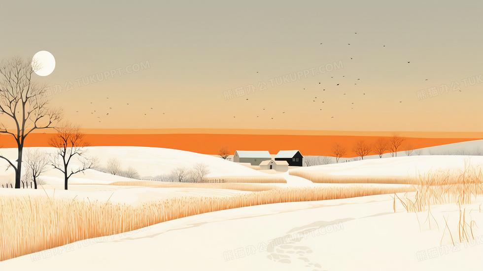 本作品内容为橙色冬季风景雪景插画, 格式为 jpg, 大小2 MB, 图片尺寸为2912 x 1632, 源文件无水印, 欢迎使用熊猫办公。 如认为平台内容涉嫌侵权,可通过邮件:tousu@tukuppt.com提出书面通知,我们将及时处理。