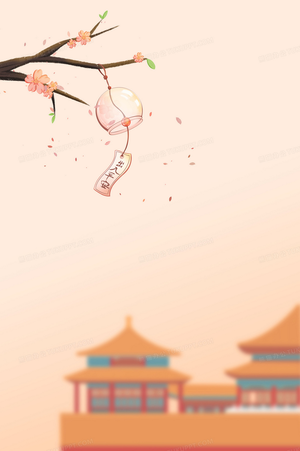 本作品内容为插画风风铃唯美古风背景, 格式为 psd, 大小28 MB, 图片尺寸为3543 x 5315, 作品中背景图片无需修改, 源文件无水印,可以直接使用, 欢迎使用熊猫办公。 如认为平台内容涉嫌侵权,可通过邮件:tousu@tukuppt.com提出书面通知,我们将及时处理。