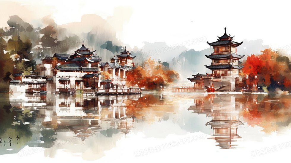 本作品内容为江南水乡古镇插画, 格式为 jpg, 大小5 MB, 图片尺寸为2912 x 1632, 源文件无水印, 欢迎使用熊猫办公。 如认为平台内容涉嫌侵权,可通过邮件:tousu@tukuppt.com提出书面通知,我们将及时处理。