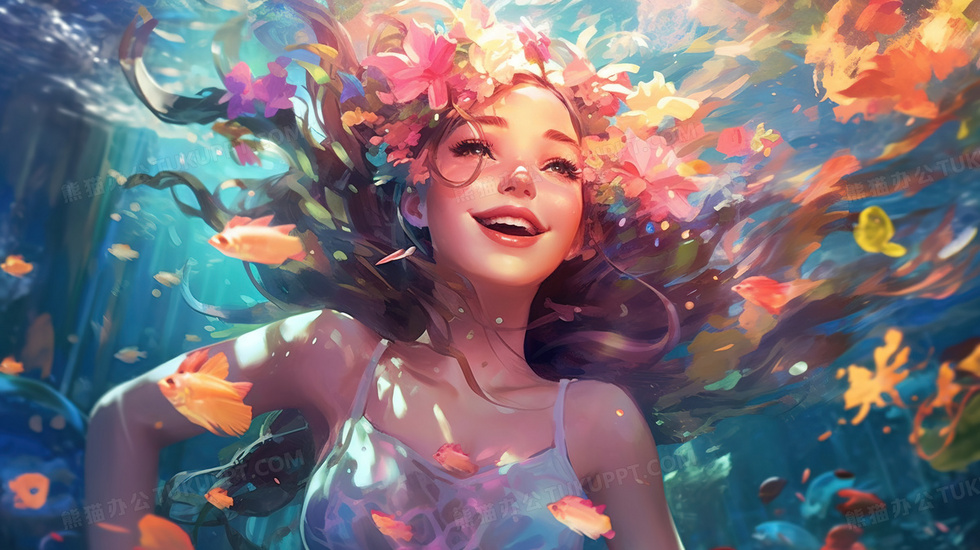 本作品内容为彩色卡通手绘唯美水中女孩, 格式为 jpg, 大小6 MB, 图片尺寸为2912 x 1632, 源文件无水印, 欢迎使用熊猫办公。 如认为平台内容涉嫌侵权,可通过邮件:tousu@tukuppt.com提出书面通知,我们将及时处理。