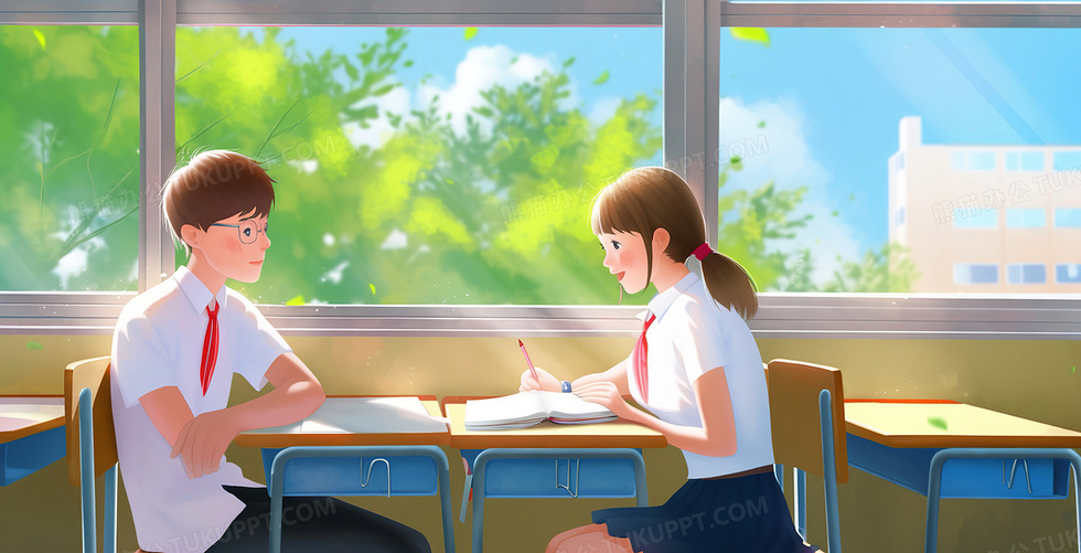 本作品内容为两个学生在教室学习讨论作业创意插画, 格式为 jpg, 大小7 MB, 图片尺寸为5824 x 2976, 源文件无水印, 欢迎使用熊猫办公。 如认为平台内容涉嫌侵权,可通过邮件:tousu@tukuppt.com提出书面通知,我们将及时处理。