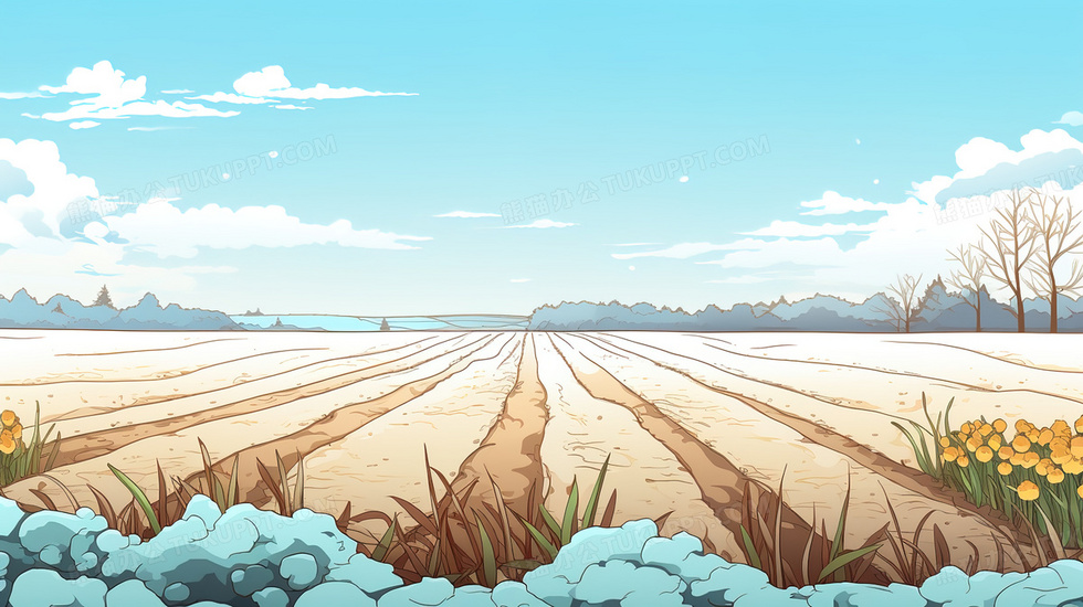 本作品内容为冬季农业耕地插画, 格式为 jpg, 大小5 MB, 图片尺寸为2912 x 1632, 源文件无水印, 欢迎使用熊猫办公。 如认为平台内容涉嫌侵权,可通过邮件:tousu@tukuppt.com提出书面通知,我们将及时处理。