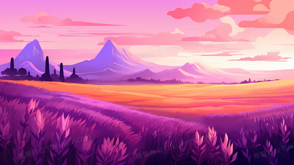 本作品内容为紫色唯美薰衣草风景插画, 格式为 jpg, 大小4 MB, 图片尺寸为2912 x 1632, 源文件无水印, 欢迎使用熊猫办公。 如认为平台内容涉嫌侵权,可通过邮件:tousu@tukuppt.com提出书面通知,我们将及时处理。