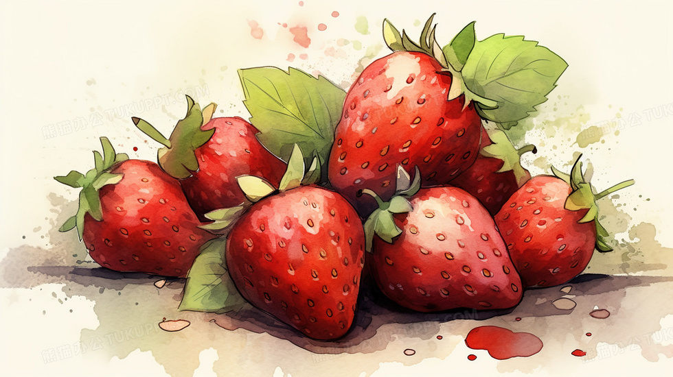 本作品内容为红色水彩质感草莓水果, 格式为 jpg, 大小6 MB, 图片尺寸为2912 x 1632, 源文件无水印, 欢迎使用熊猫办公。 如认为平台内容涉嫌侵权,可通过邮件:tousu@tukuppt.com提出书面通知,我们将及时处理。