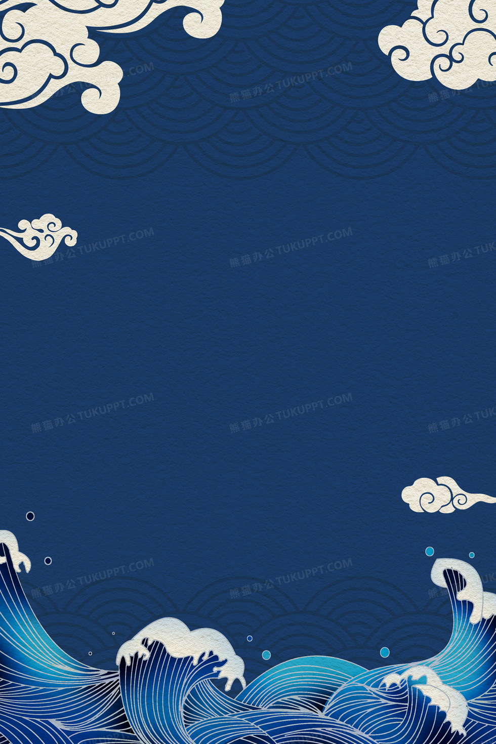 本作品内容为国潮海浪简约纹理背景, 格式为 psd, 大小90 MB, 图片尺寸为3543 x 5315, 作品中背景图片无需修改, 源文件无水印,可以直接使用, 欢迎使用熊猫办公。 如认为平台内容涉嫌侵权,可通过邮件:tousu@tukuppt.com提出书面通知,我们将及时处理。