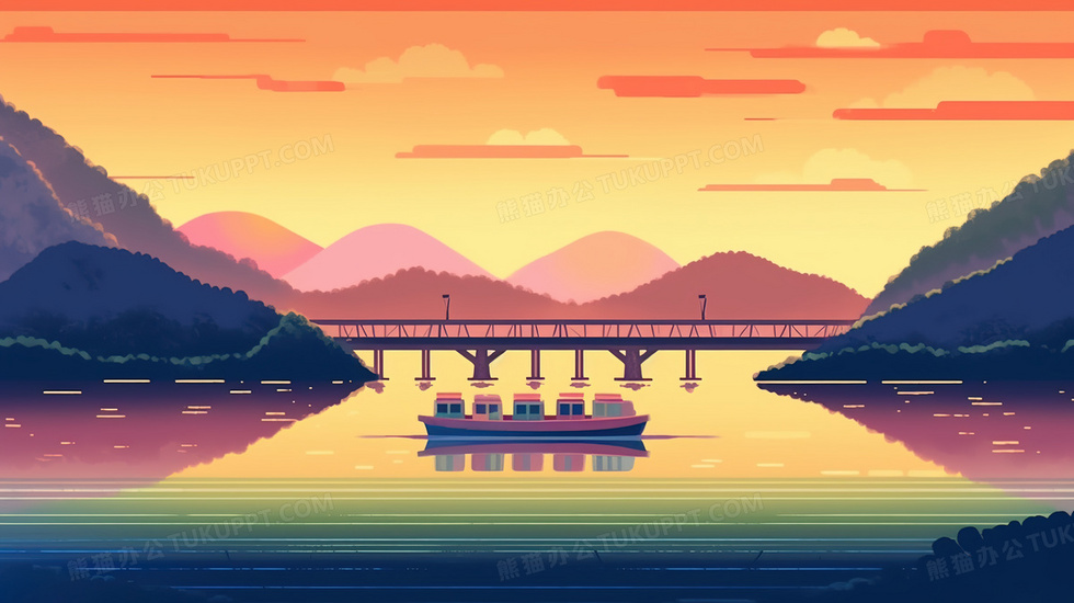 本作品内容为彩色唯美阳光下的跨海大桥风景插画, 格式为 jpg, 大小4 MB, 图片尺寸为2912 x 1632, 源文件无水印, 欢迎使用熊猫办公。 如认为平台内容涉嫌侵权,可通过邮件:tousu@tukuppt.com提出书面通知,我们将及时处理。