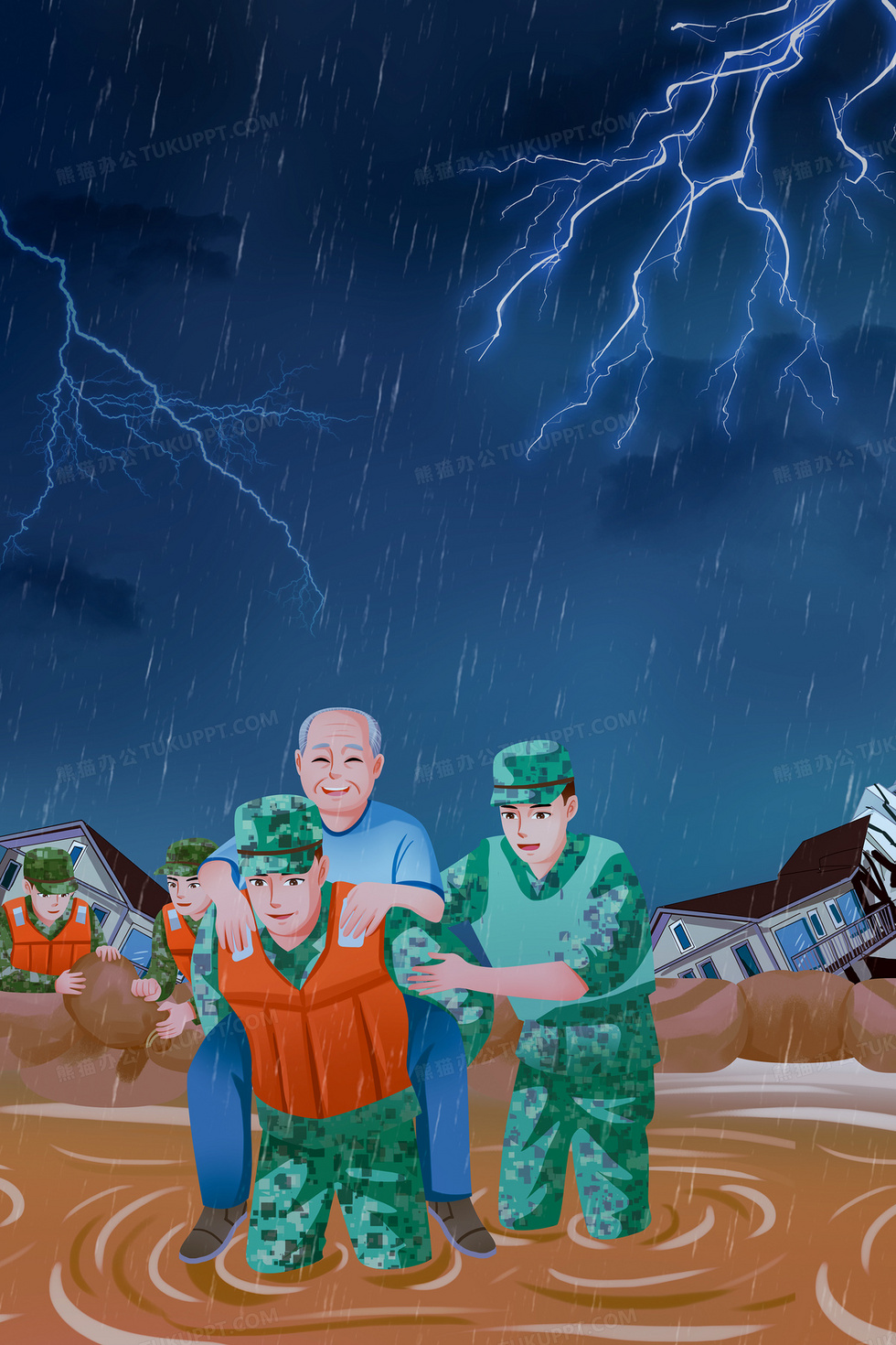 本作品内容为简约抗洪救灾背景, 格式为 psd, 大小112 MB, 图片尺寸为3543 x 5315, 作品中背景图片无需修改, 源文件无水印,可以直接使用, 欢迎使用熊猫办公。 如认为平台内容涉嫌侵权,可通过邮件:tousu@tukuppt.com提出书面通知,我们将及时处理。
