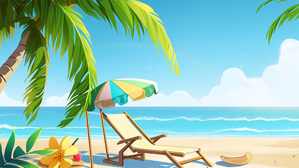 本作品内容为卡通清新夏日海边沙滩的躺椅, 格式为 jpg, 大小1 MB, 图片尺寸为2912 x 1632, 源文件无水印, 欢迎使用熊猫办公。 如认为平台内容涉嫌侵权,可通过邮件:tousu@tukuppt.com提出书面通知,我们将及时处理。