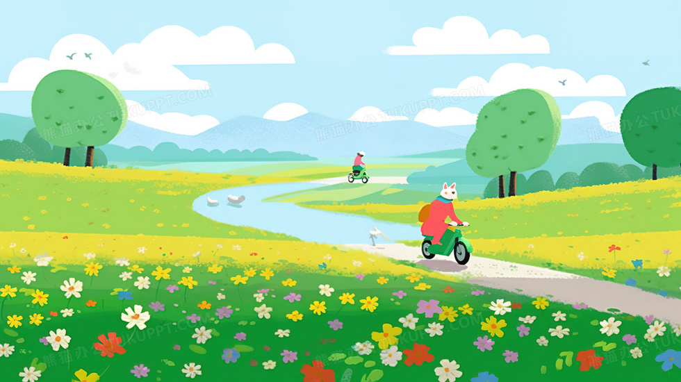 本作品内容为郊外湖边花丛草地上骑自行车的小孩插画, 格式为 jpg, 大小5 MB, 图片尺寸为2912 x 1632, 源文件无水印, 欢迎使用熊猫办公。 如认为平台内容涉嫌侵权,可通过邮件:tousu@tukuppt.com提出书面通知,我们将及时处理。