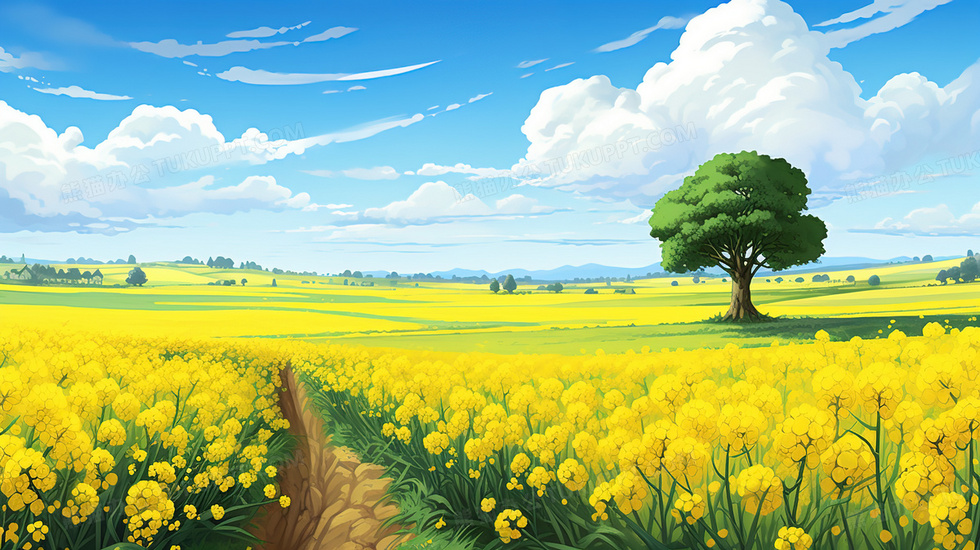 本作品内容为田野里金灿灿的油菜花海美景插画, 格式为 jpg, 大小6 MB, 图片尺寸为2912 x 1632, 源文件无水印, 欢迎使用熊猫办公。 如认为平台内容涉嫌侵权,可通过邮件:tousu@tukuppt.com提出书面通知,我们将及时处理。