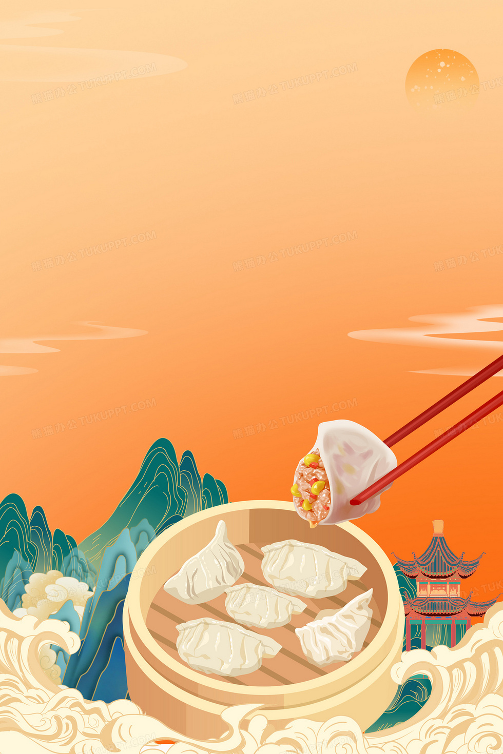 本作品内容为国潮风冬至水饺背景, 格式为 psd, 大小36 MB, 图片尺寸为3543 x 5315, 作品中背景图片无需修改, 源文件无水印,可以直接使用, 欢迎使用熊猫办公。 如认为平台内容涉嫌侵权,可通过邮件:tousu@tukuppt.com提出书面通知,我们将及时处理。