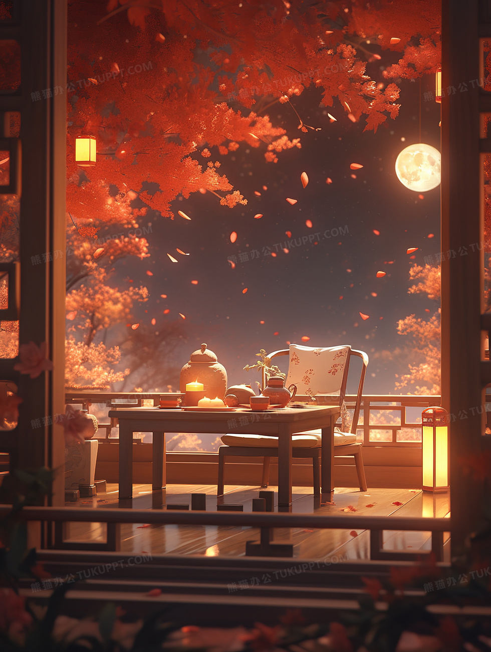 本作品内容为古色古香中秋节赏月场景创意插画, 格式为 jpg, 大小6 MB, 图片尺寸为1856 x 2464, 源文件无水印, 欢迎使用熊猫办公。 如认为平台内容涉嫌侵权,可通过邮件:tousu@tukuppt.com提出书面通知,我们将及时处理。