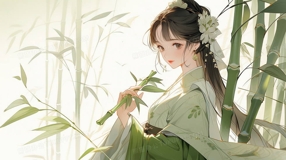 本作品内容为唯美古风美女竹林中的少女创意插画, 格式为 jpg, 大小6 MB, 图片尺寸为2912 x 1632, 源文件无水印, 欢迎使用熊猫办公。 如认为平台内容涉嫌侵权,可通过邮件:tousu@tukuppt.com提出书面通知,我们将及时处理。