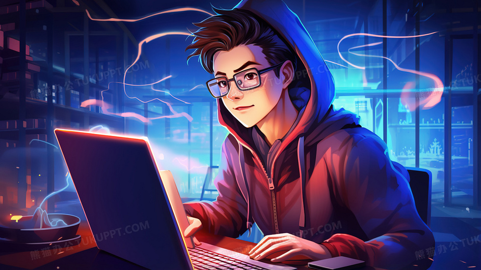 本作品内容为夜晚加班工作的打工人插画, 格式为 jpg, 大小5 MB, 图片尺寸为2912 x 1632, 源文件无水印, 欢迎使用熊猫办公。 如认为平台内容涉嫌侵权,可通过邮件:tousu@tukuppt.com提出书面通知,我们将及时处理。