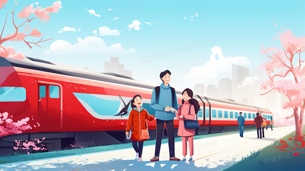 本作品内容为春节春运归家的列车插画, 格式为 jpg, 大小4 MB, 图片尺寸为2912 x 1632, 源文件无水印, 欢迎使用熊猫办公。 如认为平台内容涉嫌侵权,可通过邮件:tousu@tukuppt.com提出书面通知,我们将及时处理。
