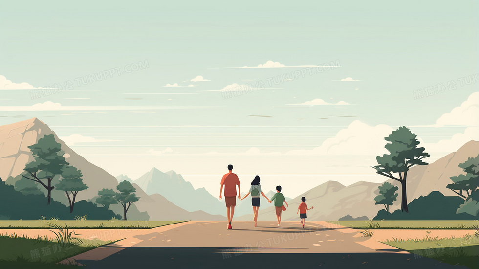 本作品内容为牵着手在户外散步的一家人风景插画, 格式为 jpg, 大小4 MB, 图片尺寸为2912 x 1632, 源文件无水印, 欢迎使用熊猫办公。 如认为平台内容涉嫌侵权,可通过邮件:tousu@tukuppt.com提出书面通知,我们将及时处理。