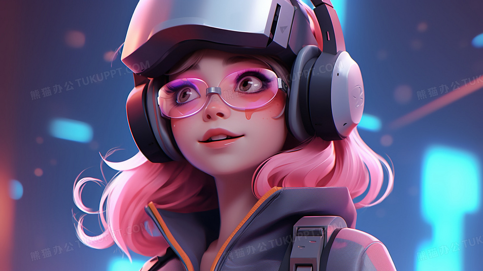 本作品内容为VR虚拟现实中的粉色头发女孩插画, 格式为 jpg, 大小5 MB, 图片尺寸为2912 x 1632, 源文件无水印, 欢迎使用熊猫办公。 如认为平台内容涉嫌侵权,可通过邮件:tousu@tukuppt.com提出书面通知,我们将及时处理。