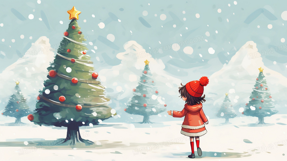 本作品内容为冬天雪地里圣诞树旁等待礼物的孩子插画, 格式为 jpg, 大小4 MB, 图片尺寸为2912 x 1632, 源文件无水印, 欢迎使用熊猫办公。 如认为平台内容涉嫌侵权,可通过邮件:tousu@tukuppt.com提出书面通知,我们将及时处理。