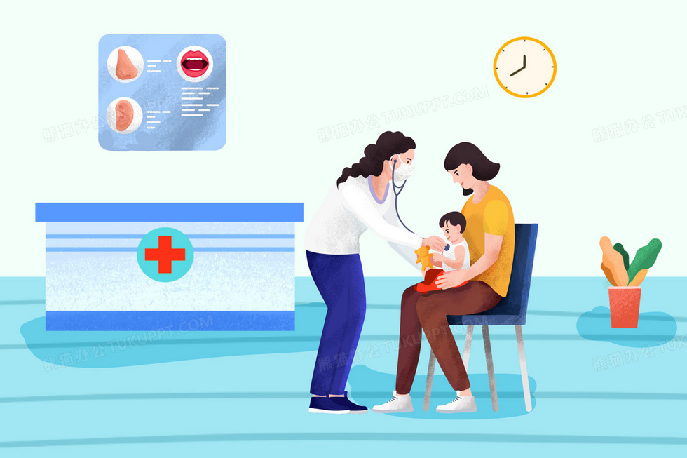 本作品内容为妈妈带着宝宝看医生插画, 格式为 psd, 大小7 MB, 请使用软件PhotoShop(CC)打开, 源文件无水印, 欢迎使用熊猫办公。 如认为平台内容涉嫌侵权,可通过邮件:tousu@tukuppt.com提出书面通知,我们将及时处理。