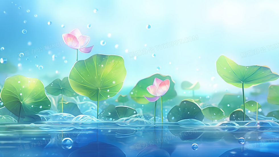 本作品内容为唯美夏日荷花插画, 格式为 jpg, 大小4 MB, 图片尺寸为2912 x 1632, 源文件无水印, 欢迎使用熊猫办公。 如认为平台内容涉嫌侵权,可通过邮件:tousu@tukuppt.com提出书面通知,我们将及时处理。
