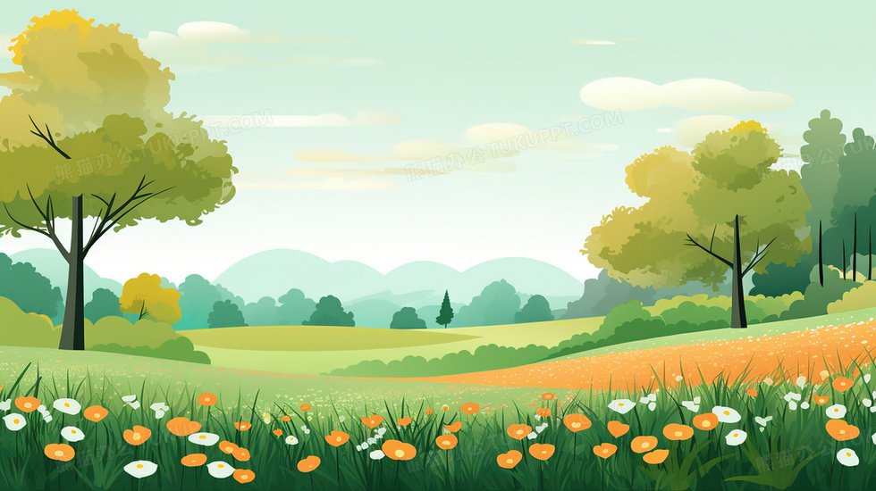 本作品内容为山林里的乡间小道旁的草地花丛春日美景插画, 格式为 jpg, 大小5 MB, 图片尺寸为2912 x 1632, 源文件无水印, 欢迎使用熊猫办公。 如认为平台内容涉嫌侵权,可通过邮件:tousu@tukuppt.com提出书面通知,我们将及时处理。