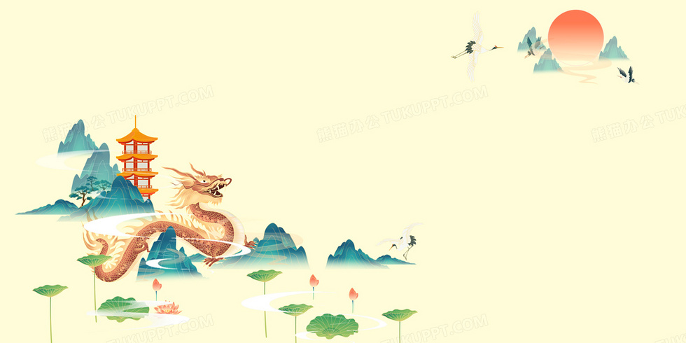 本作品内容为淡雅国风龙年背景, 格式为 psd, 大小19 MB, 图片尺寸为4724 x 2362, 作品中背景图片无需修改, 源文件无水印,可以直接使用, 欢迎使用熊猫办公。 如认为平台内容涉嫌侵权,可通过邮件:tousu@tukuppt.com提出书面通知,我们将及时处理。
