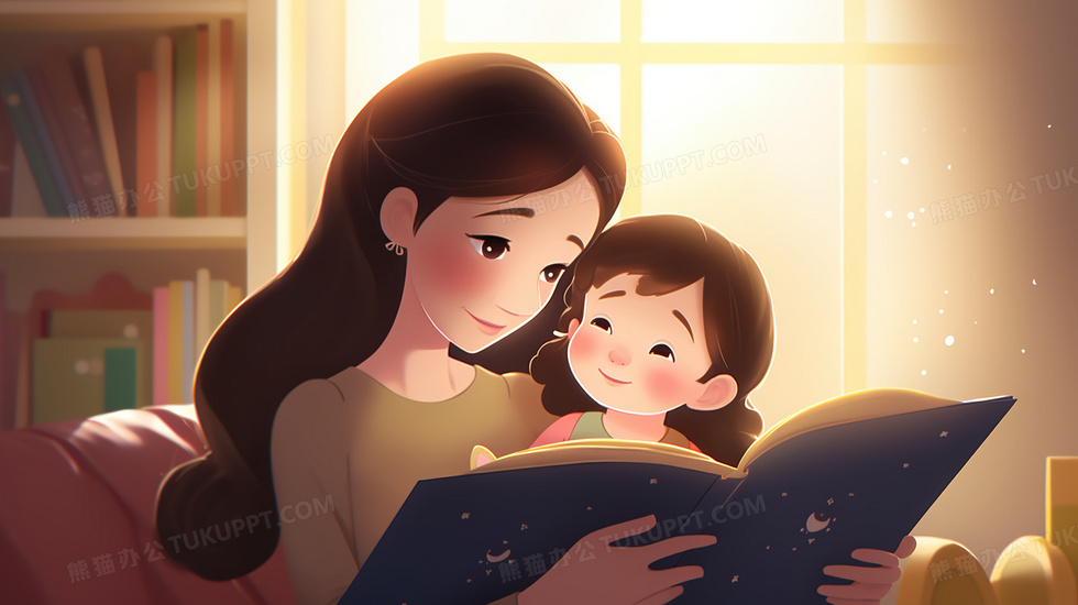 本作品内容为妈妈给孩子讲故事温馨插画, 格式为 jpg, 大小4 MB, 图片尺寸为2912 x 1632, 源文件无水印, 欢迎使用熊猫办公。 如认为平台内容涉嫌侵权,可通过邮件:tousu@tukuppt.com提出书面通知,我们将及时处理。
