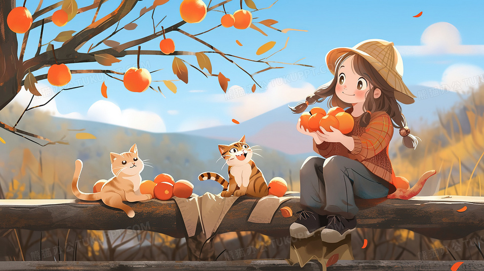 本作品内容为摘柿子的小女孩和猫咪插画, 格式为 jpg, 大小3 MB, 图片尺寸为2912 x 1632, 源文件无水印, 欢迎使用熊猫办公。 如认为平台内容涉嫌侵权,可通过邮件:tousu@tukuppt.com提出书面通知,我们将及时处理。