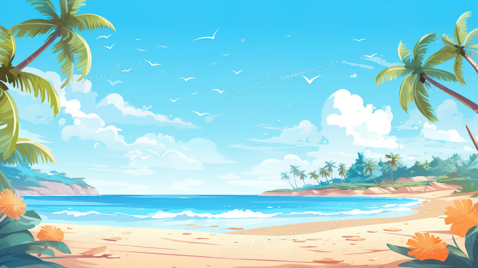 本作品内容为蓝色阳光海滩惬意度假风插画, 格式为 jpg, 大小5 MB, 图片尺寸为2912 x 1632, 源文件无水印, 欢迎使用熊猫办公。 如认为平台内容涉嫌侵权,可通过邮件:tousu@tukuppt.com提出书面通知,我们将及时处理。