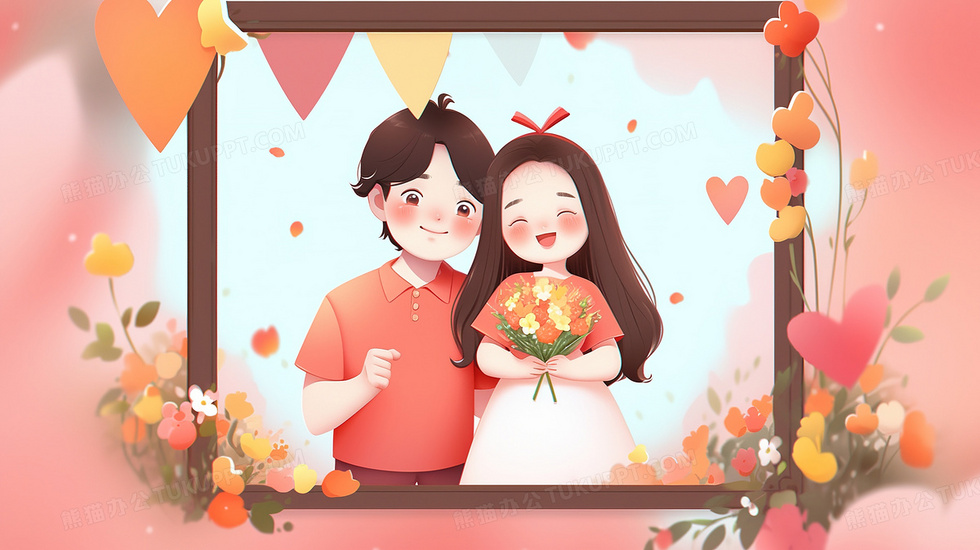 本作品内容为情人节纪念小情侣相册插画, 格式为 jpg, 大小2 MB, 图片尺寸为2912 x 1632, 源文件无水印, 欢迎使用熊猫办公。 如认为平台内容涉嫌侵权,可通过邮件:tousu@tukuppt.com提出书面通知,我们将及时处理。
