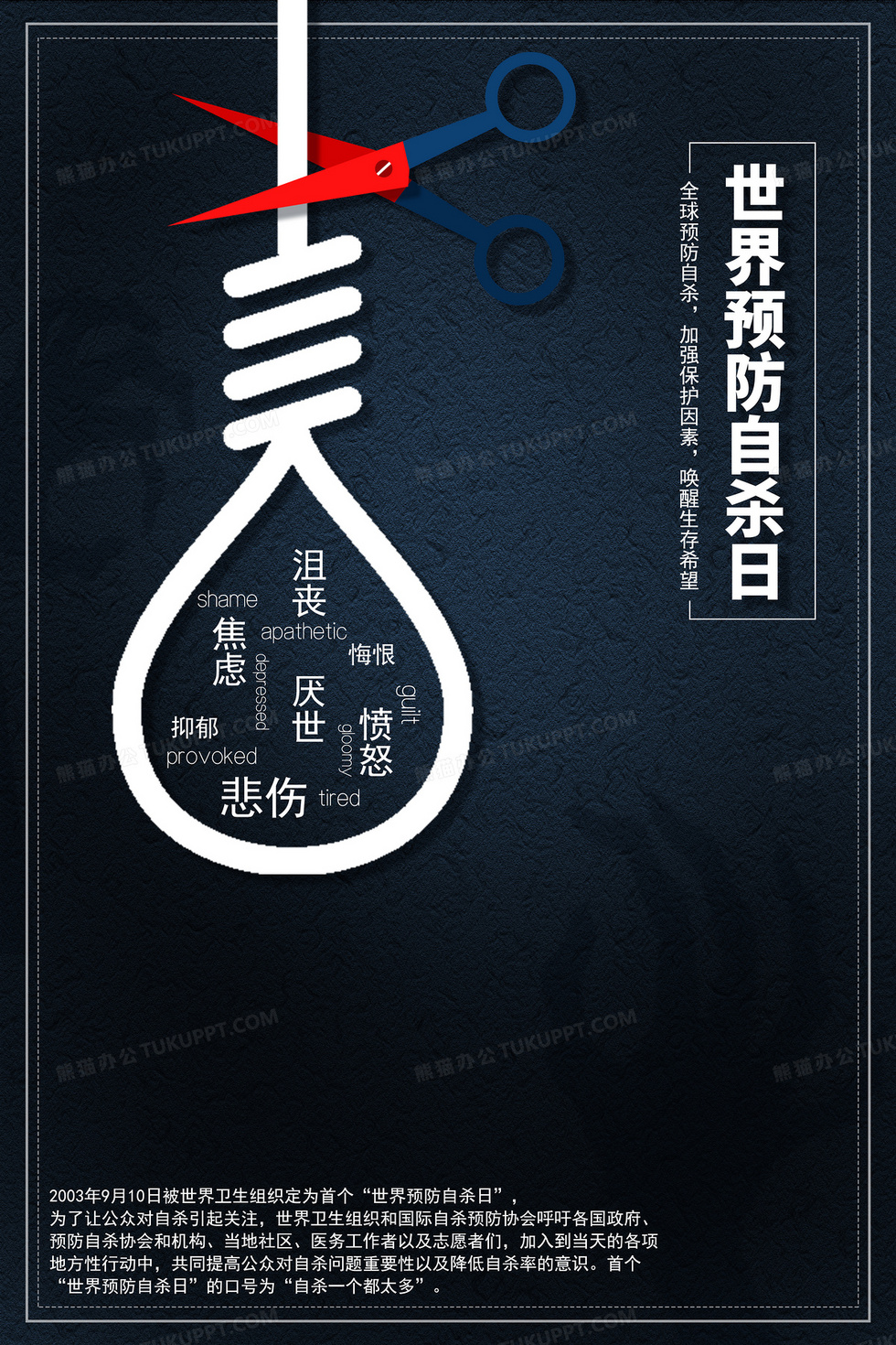 本作品内容为世界预防自杀日珍爱生命保护生命创意背景, 格式为 psd, 大小67 MB, 图片尺寸为3543 x 5315, 作品中背景图片无需修改, 源文件无水印,可以直接使用, 欢迎使用熊猫办公。 如认为平台内容涉嫌侵权,可通过邮件:tousu@tukuppt.com提出书面通知,我们将及时处理。