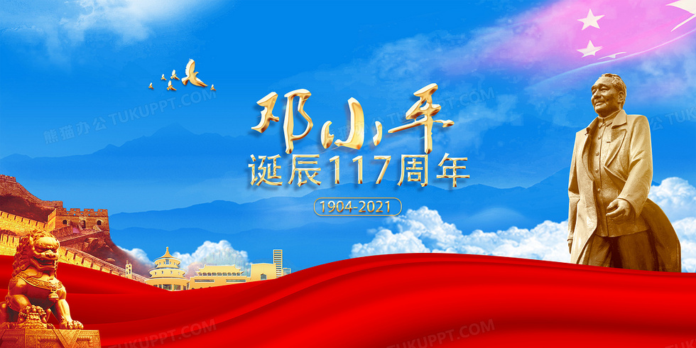 本作品内容为纪念邓小平诞辰117周年党建背景, 格式为 psd, 大小42 MB, 图片尺寸为4724 x 2362, 作品中背景图片无需修改, 源文件无水印,可以直接使用, 欢迎使用熊猫办公。 如认为平台内容涉嫌侵权,可通过邮件:tousu@tukuppt.com提出书面通知,我们将及时处理。