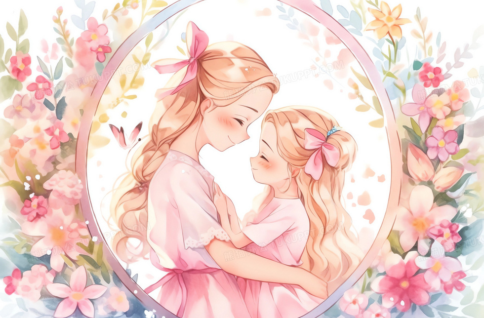 本作品内容为漫画风圆形相框里妈妈搂着女儿合照插图, 格式为 jpg, 大小4 MB, 图片尺寸为2688 x 1768, 源文件无水印, 欢迎使用熊猫办公。 如认为平台内容涉嫌侵权,可通过邮件:tousu@tukuppt.com提出书面通知,我们将及时处理。