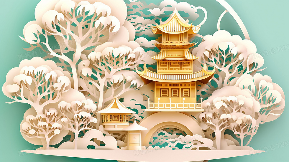 本作品内容为奢华金色中国风亭台楼阁园林建筑创意剪纸插画, 格式为 jpg, 大小15 MB, 图片尺寸为8736 x 4896, 源文件无水印, 欢迎使用熊猫办公。 如认为平台内容涉嫌侵权,可通过邮件:tousu@tukuppt.com提出书面通知,我们将及时处理。