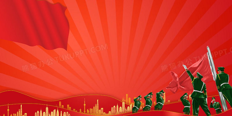 本作品内容为红色党政红旗飘扬军人敬礼党建背景, 格式为 psd, 大小14 MB, 图片尺寸为4724 x 2362, 作品中背景图片无需修改, 源文件无水印,可以直接使用, 欢迎使用熊猫办公。 如认为平台内容涉嫌侵权,可通过邮件:tousu@tukuppt.com提出书面通知,我们将及时处理。